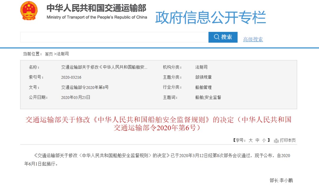 交通部发布的公告中指出:《规则》新增的第四十七条中,明确了对拟交付船舶国际运输的集装箱进行重量验证中的托运人和承运人义务,要求托运人在交付船舶运输前对集装箱重量进行验证,承运人对未取得验证信息或者验证重量超过最大营运总质量的集装箱不得装船,将3年多的实践经验上升到部规章层面。